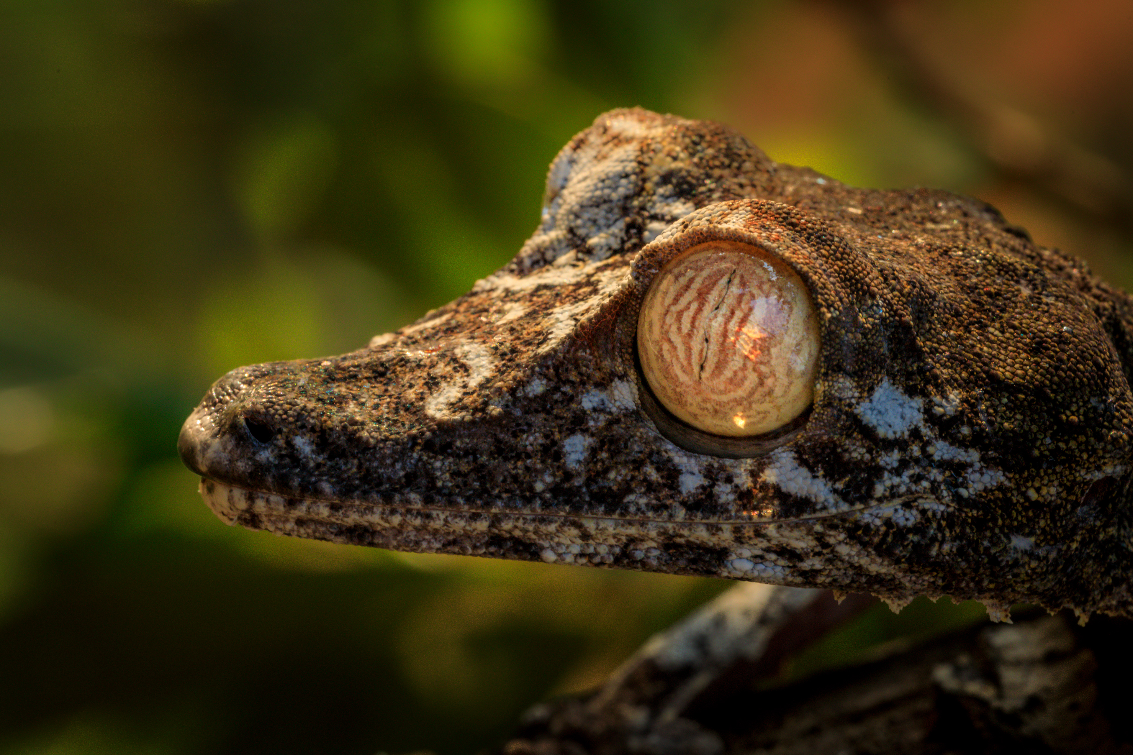 Hier is een goed gecamoufleerde bladstaartgekko te zien